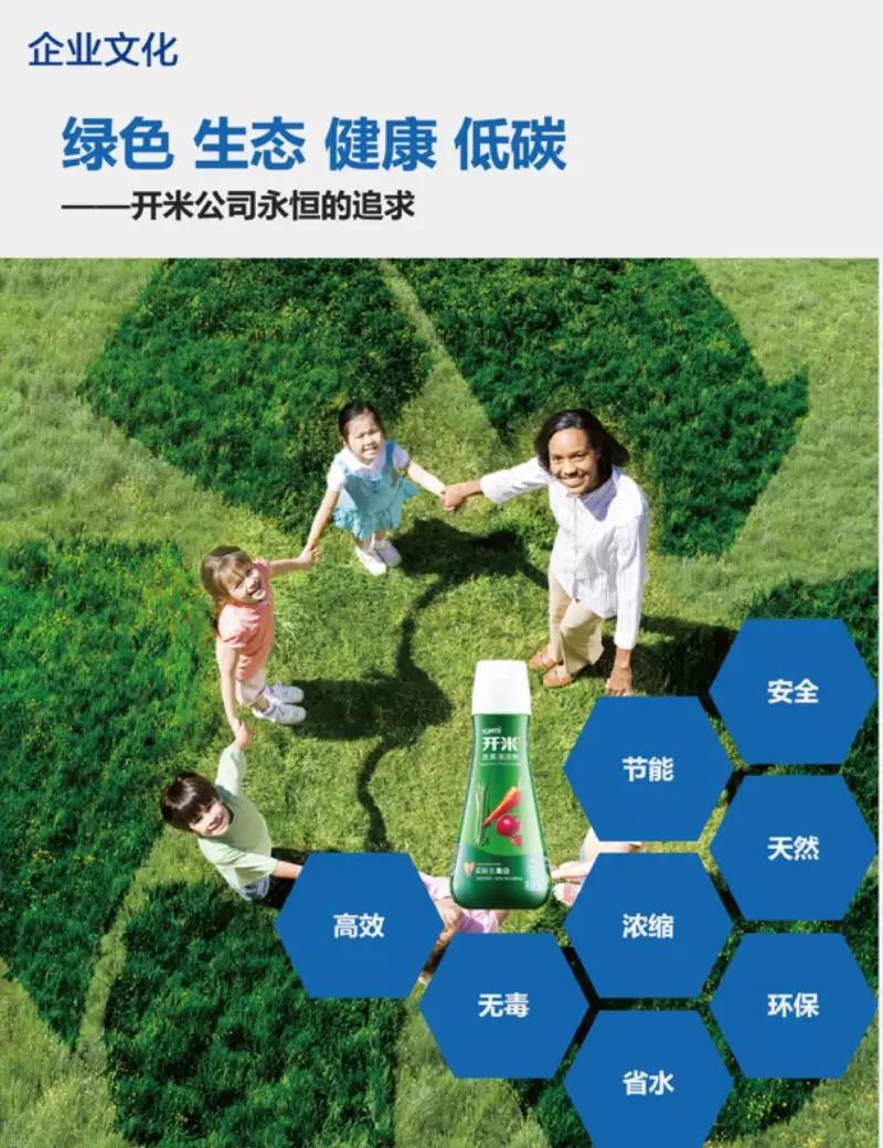 在疫情中,受到公众重视的另一个产品是绿色果蔬清洗剂,每日食用的水果蔬菜必须清洗、杀菌。使用开米蔬果清洗剂稀释水浸泡15-30分钟可以确保食用安全。同时,公众长久关心的蔬果农药残留问题,开米蔬果清洗剂可实现18种常用农药去除率大于等于95%。权威部门的检测数据表明,小白鼠半数致死量(LD50)为5100mg/kg体重,且对雌雄小鼠骨髓细胞微核试验均为阴性,对金黄色葡萄球菌和大肠杆菌的抑菌率均达到99%以上,有效保障了人体的健康。这就为公众解除了蔬果清洗剂本身是否安全的疑虑,为公众送上了实际无毒级蔬果清洗剂。
